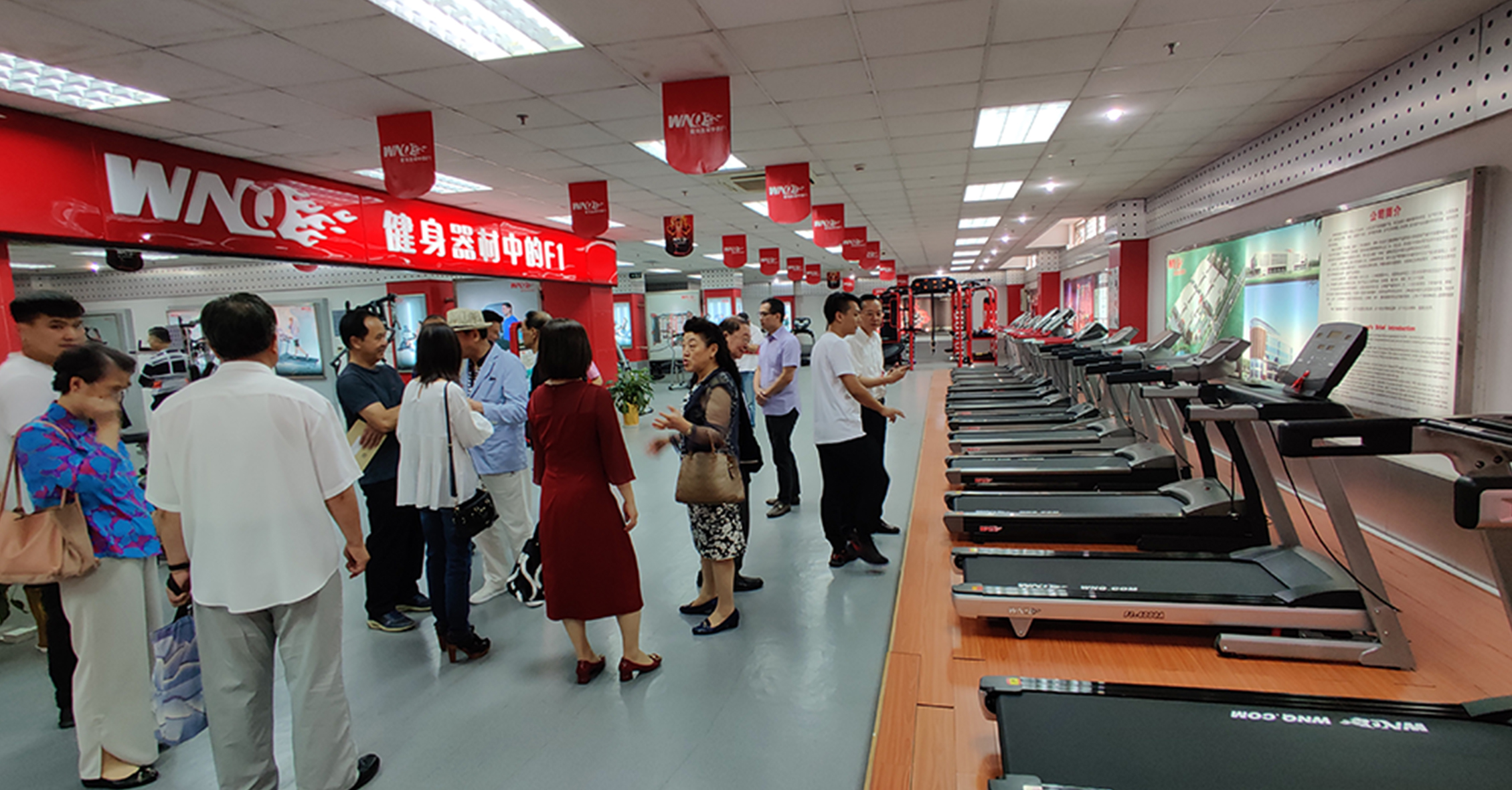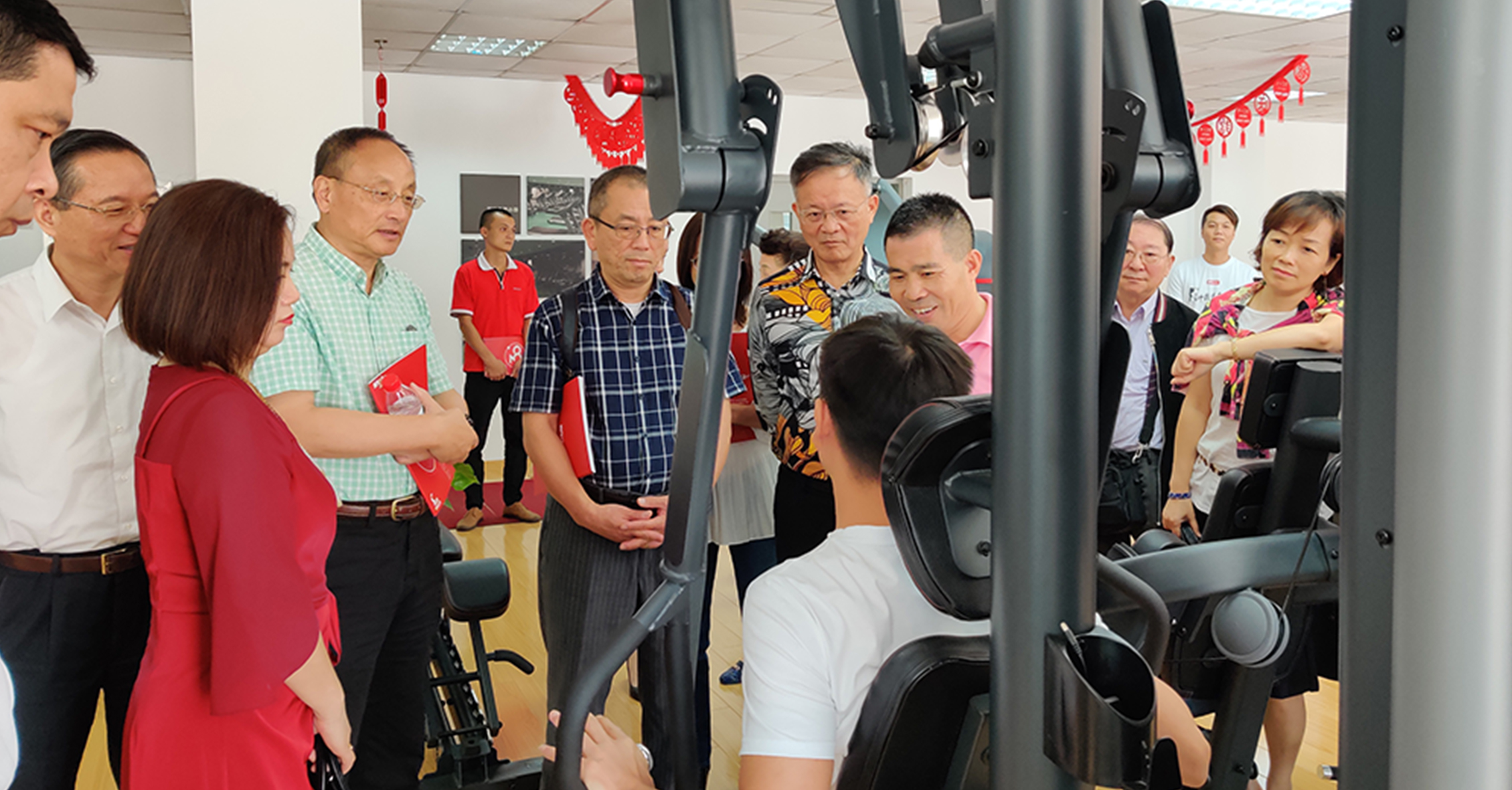 首先,来宾一行参观考察了芒果体育的文化长廊,对我司的发展历程、企业文化、企业特色等方面进行初步了解。在参观一楼与负一楼展厅过程中,来宾一行对芒果体育种类齐全的健身器材表现出浓厚的兴趣。